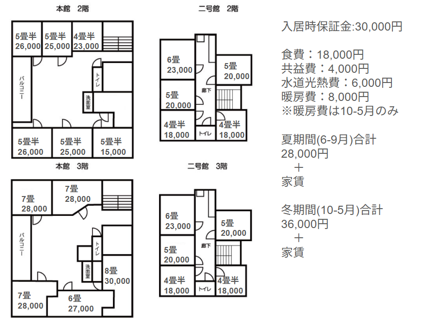 ベッド、寝具(シーツ交換無料)机、椅子、カーテン、冷蔵庫、FFストーブ、棚、物干、クローゼット